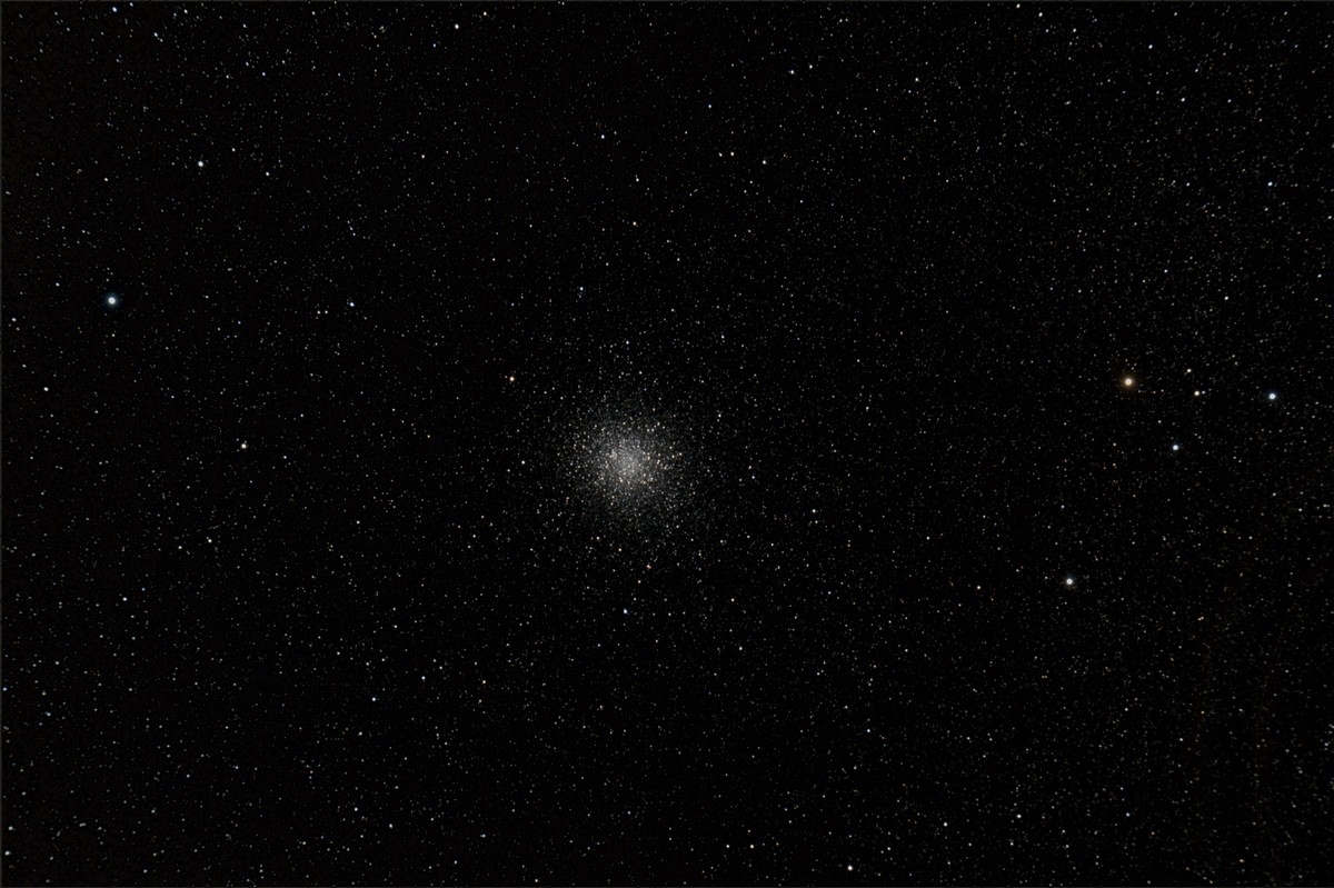 M92 Globular Cluster Telescope: Stellarvue SV80S Mount: AP 900 GTO Camera: ZWO ASI178MC-COOL Color Exposure: 3 mins 50 secs (46 at 5 seconds) Processing: ImagesPlus 6.5 Location: MHO Date: 9-Jun-2017 |