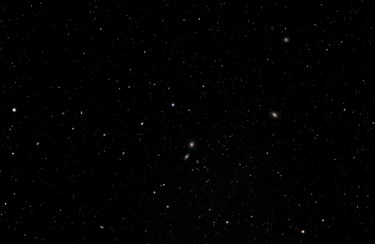 M51 Galaxy Telescope: Vixen VMC200L Mount: AP 900 GTO Camera: Canon 60Da ISO 12800 Exposure: 16m 55s (35 at 30 secs.) Location: MHO Date: 8-Jun-2016 |
