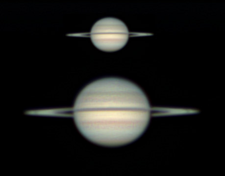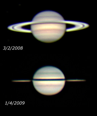 Saturn 2-Mar-2008 and 4-Jan-2009Meade 12" LX200R 1.5X barlow Lumenera SKYnyx-2-0 ImagesPlus 3.5 processed PhotoImpact 11 scaled 1.5x |