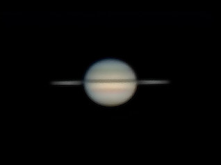 Saturn 15-May-2009Meade 12" LX200R f/25, Orion Shorty Plus 2x barlow Lumenera SkyNYX-2, 320x240, 14fps, 1705 frames, 120sec. 12 bit color ImagesPlus 3.75, 1.5x scaled |