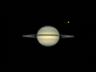 Saturn & Titan 12-Apr-2009Meade 12" LX200R, f/20 Lumenera SKYnyx2-0, 852frames, 14fps, 60sec. ImagesPlus 3.75, PhotoImpact 11 |